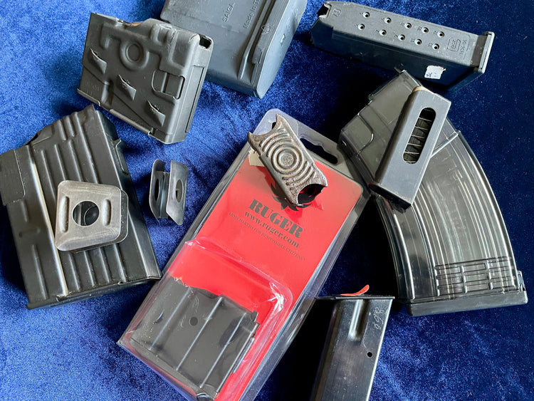 An assortment of hard to find magazines, clips and related accessories.