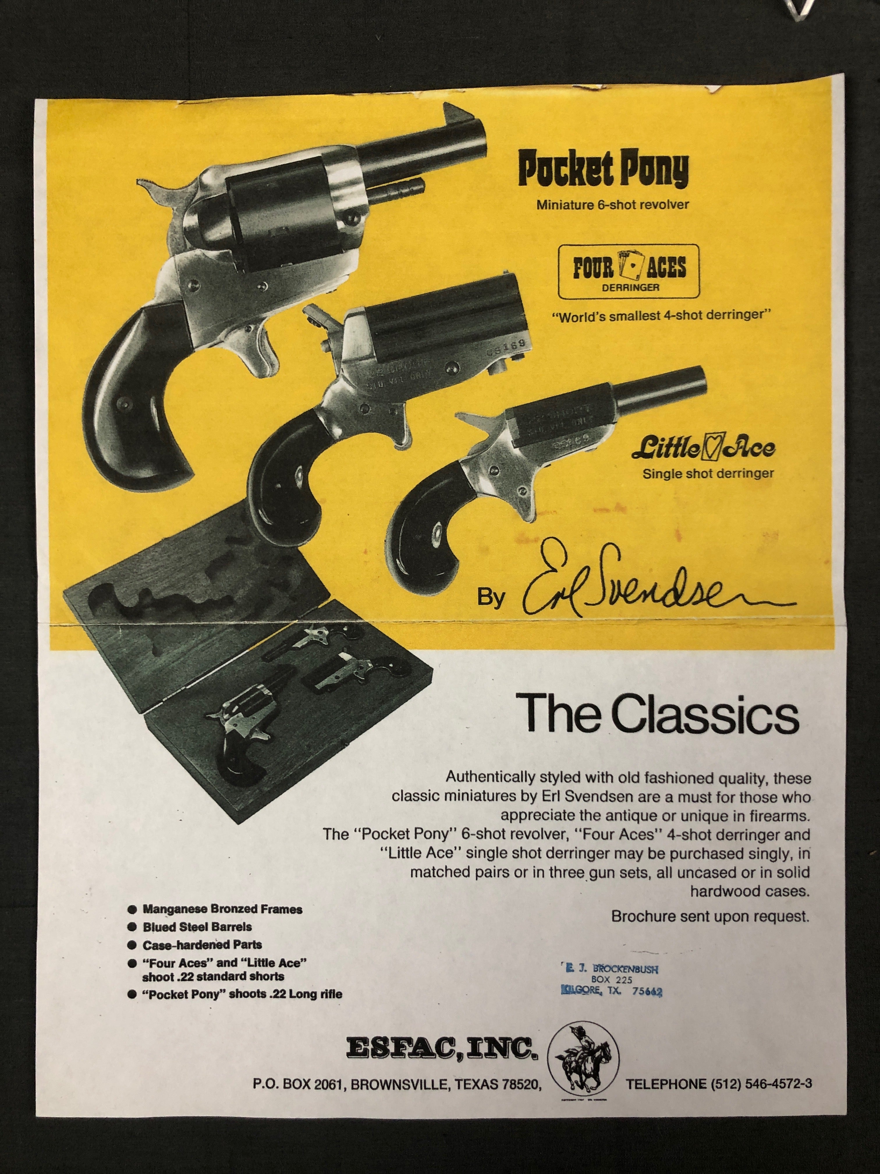The sets contained a Pocket Pony, Four Aces and a Little Ace, any of which could be... "purchased singly, in matched pairs or in three gun sets, all uncased or in solid hardwood cases."