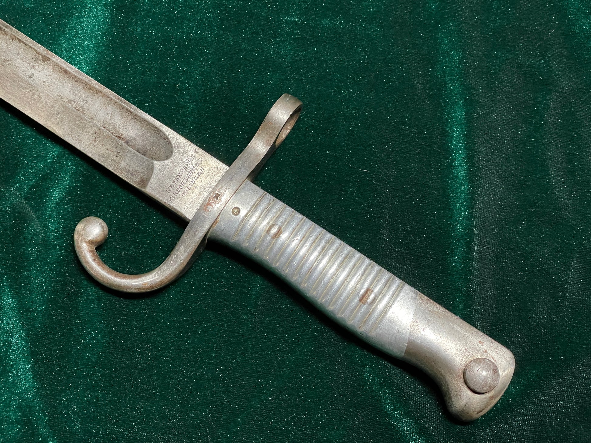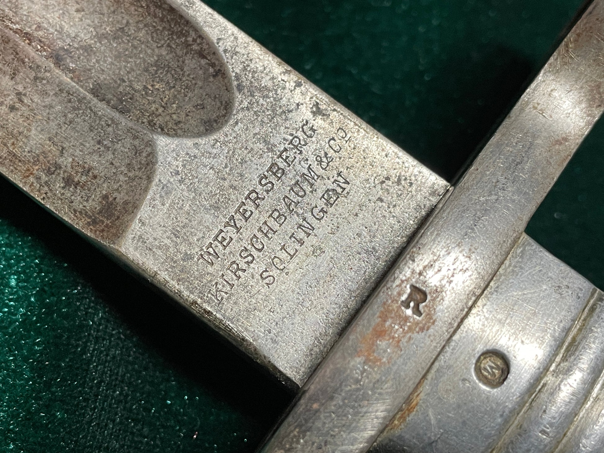 An Argentine M1891 bayonet with the aluminum grips made by 'Weyersberg, Kirschbaum & Co' in Solingen. No scabbard.
