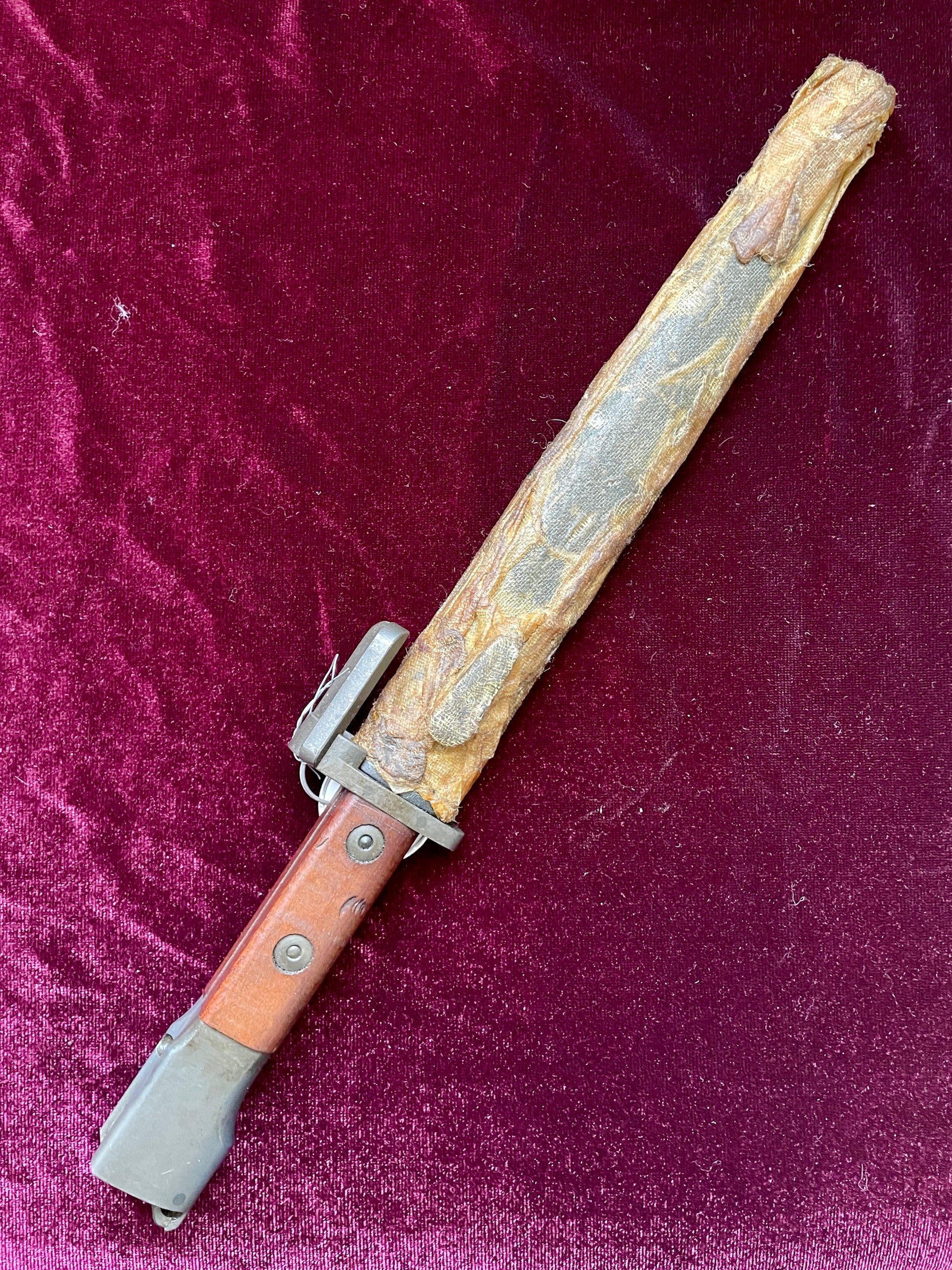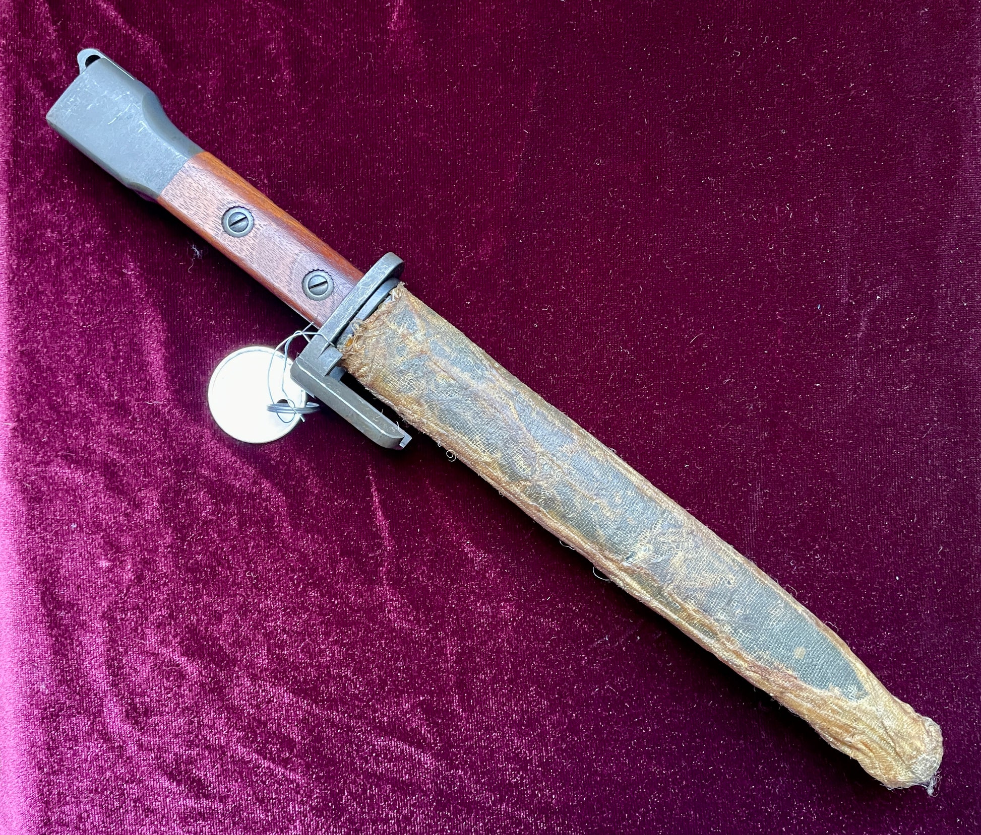 The scabbard is still mummy wrapped. VERY good condition. Quality bayonet. Looks to be NOS.