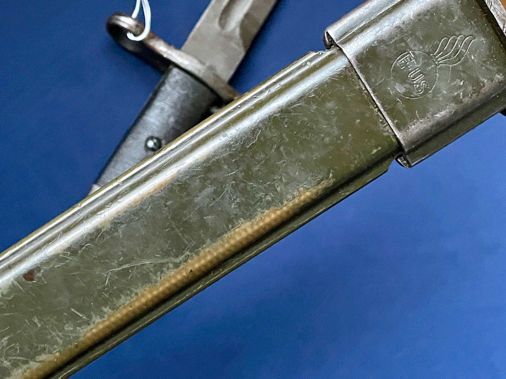 Nice example of the Greek "EN S" "E_US" bayonet for the M1 with scabbard.