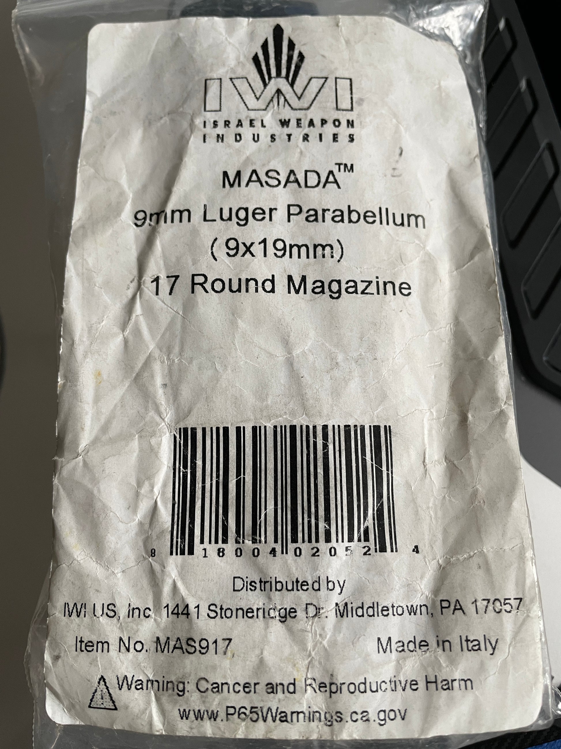IWI MASADA 9mm 17 rd mag for standard and tactical models. NOS