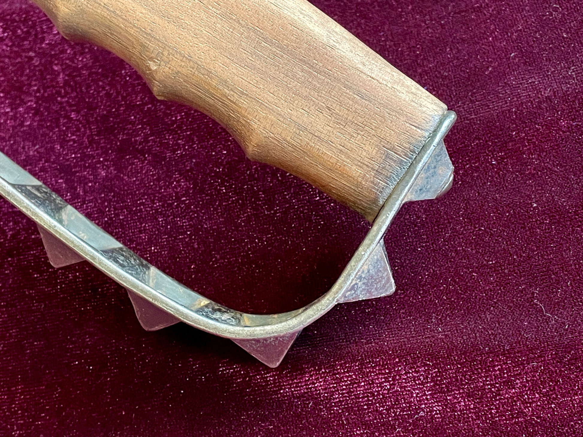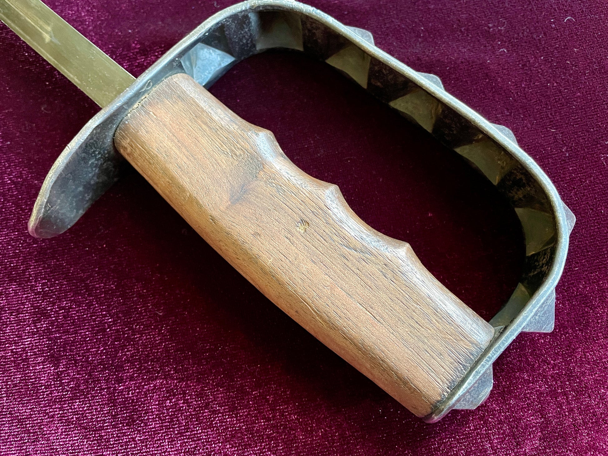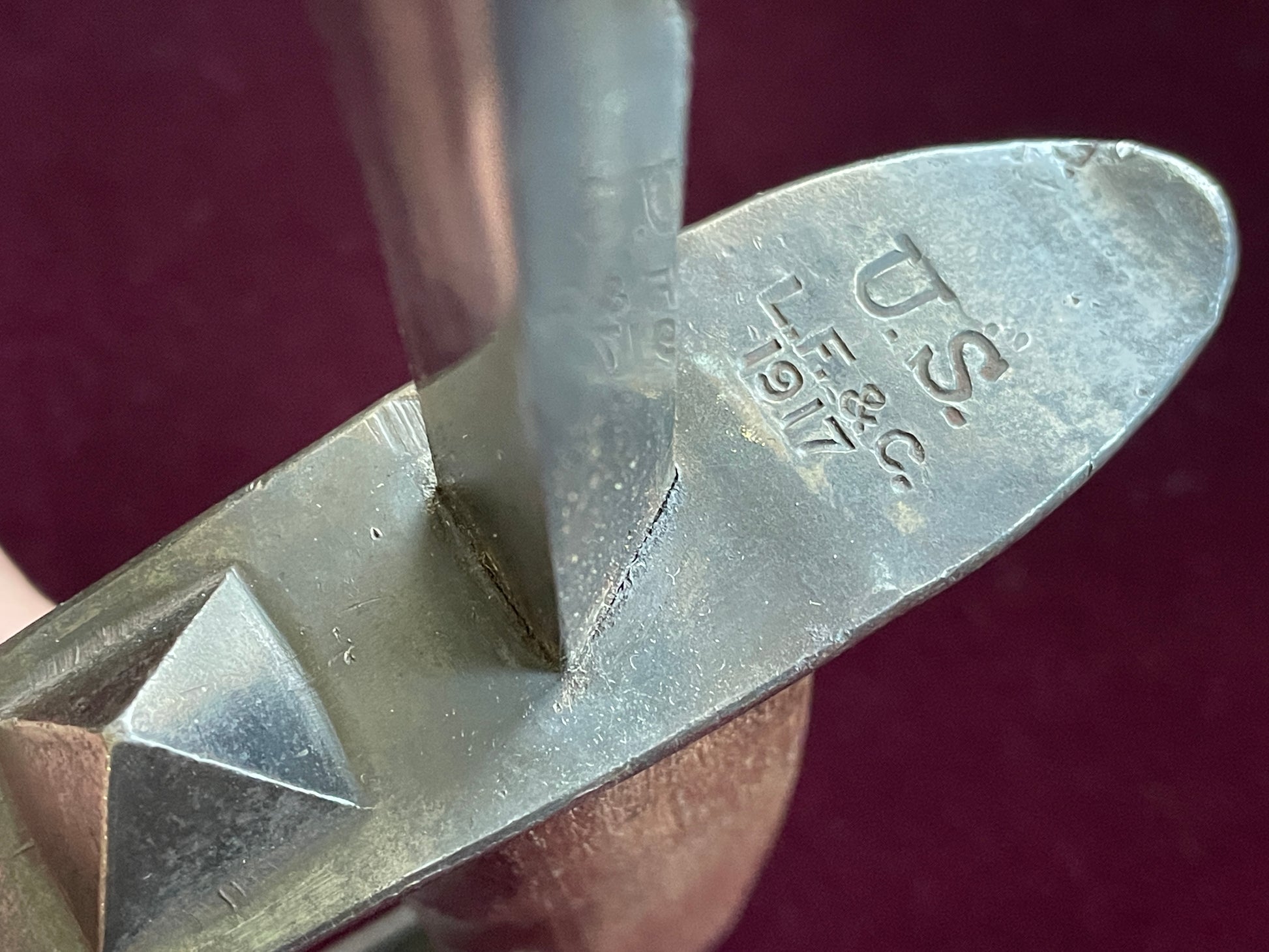 U.S. marked 1917 trench knife made by Landers, Frary & Clark (L.F.&C.) This is the 'type 2' triangular blade with 7 pyramid knobs around the hand guard. Walnut grips and the 9" blade are in great shape.