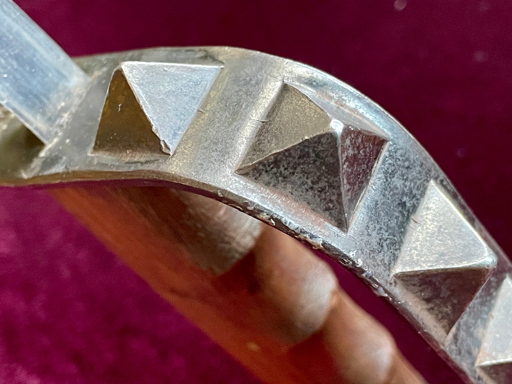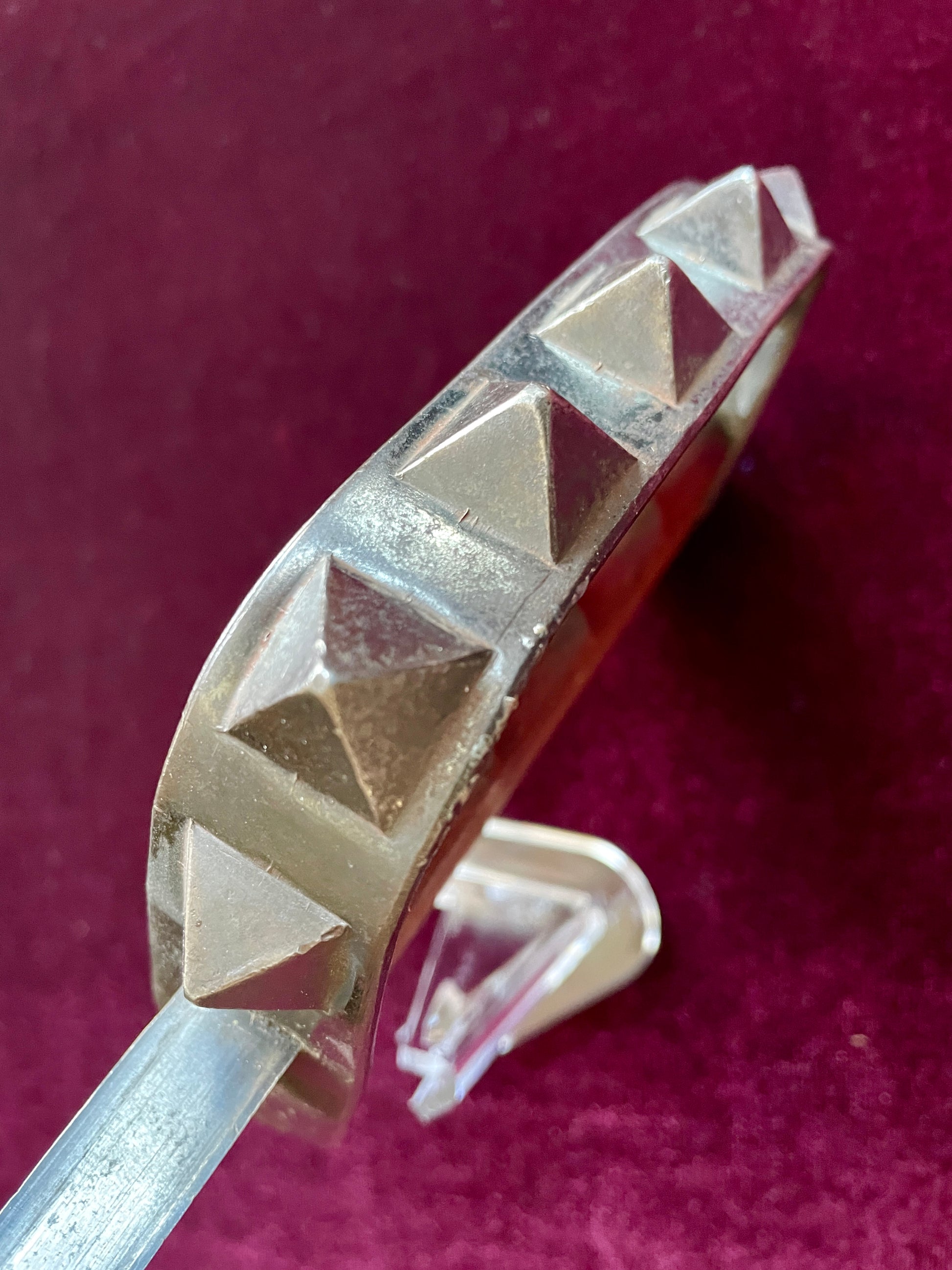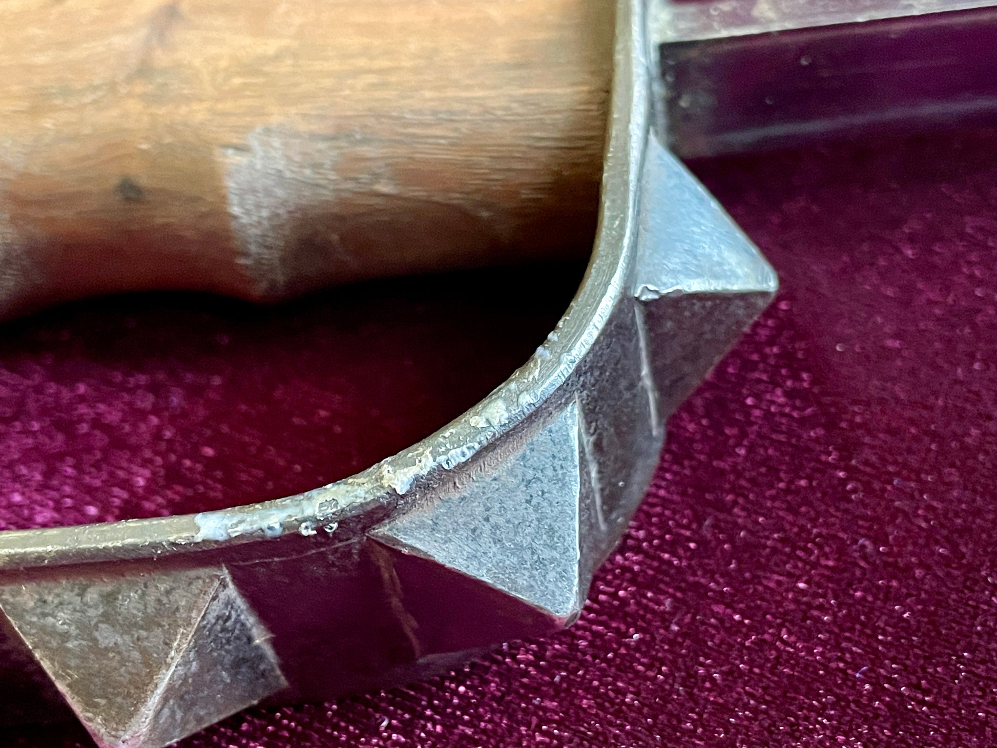 U.S. marked 1917 trench knife made by Landers, Frary & Clark (L.F.&C.) This is the 'type 2' triangular blade with 7 pyramid knobs around the hand guard. Walnut grips and the 9" blade are in great shape.