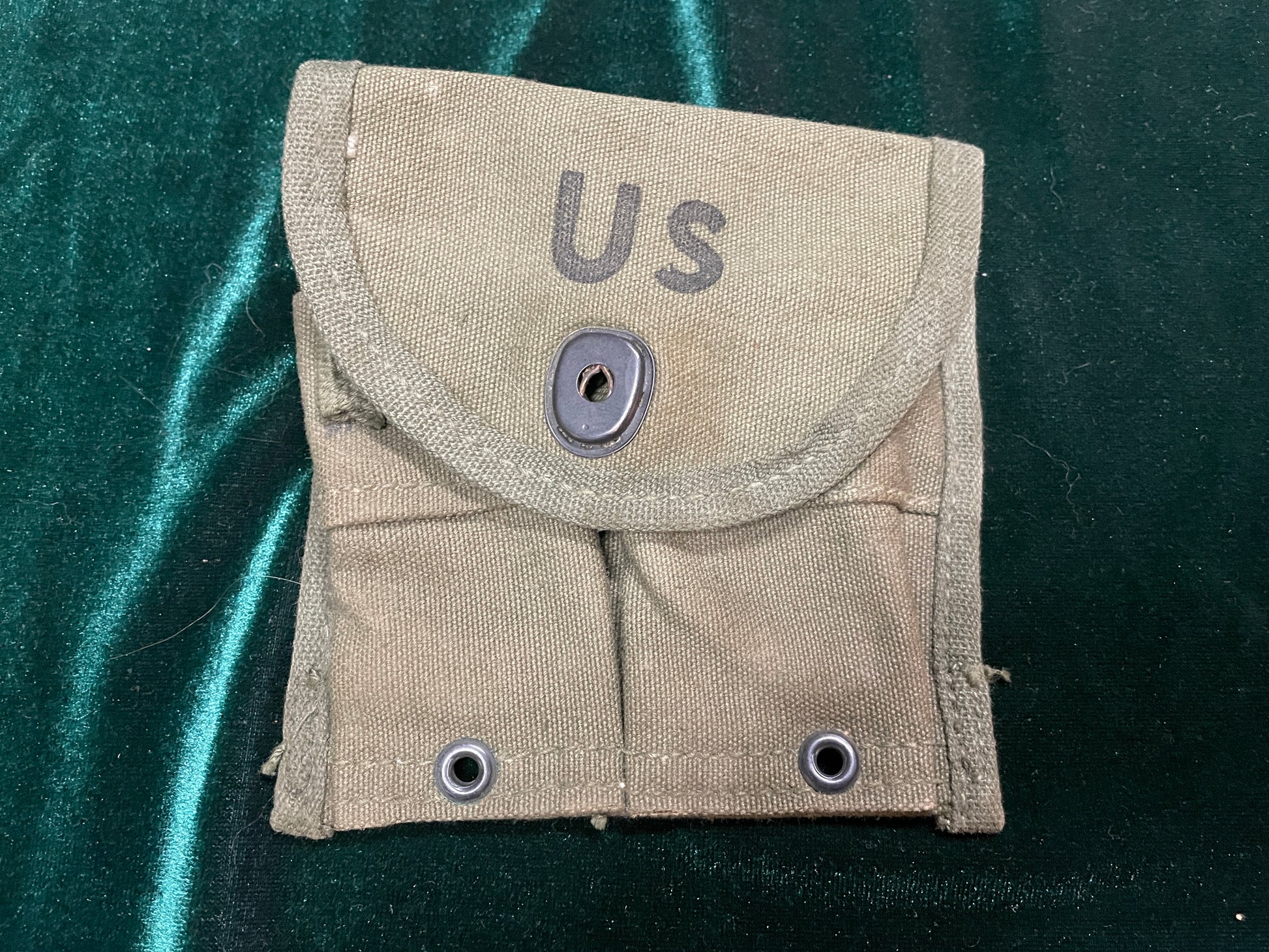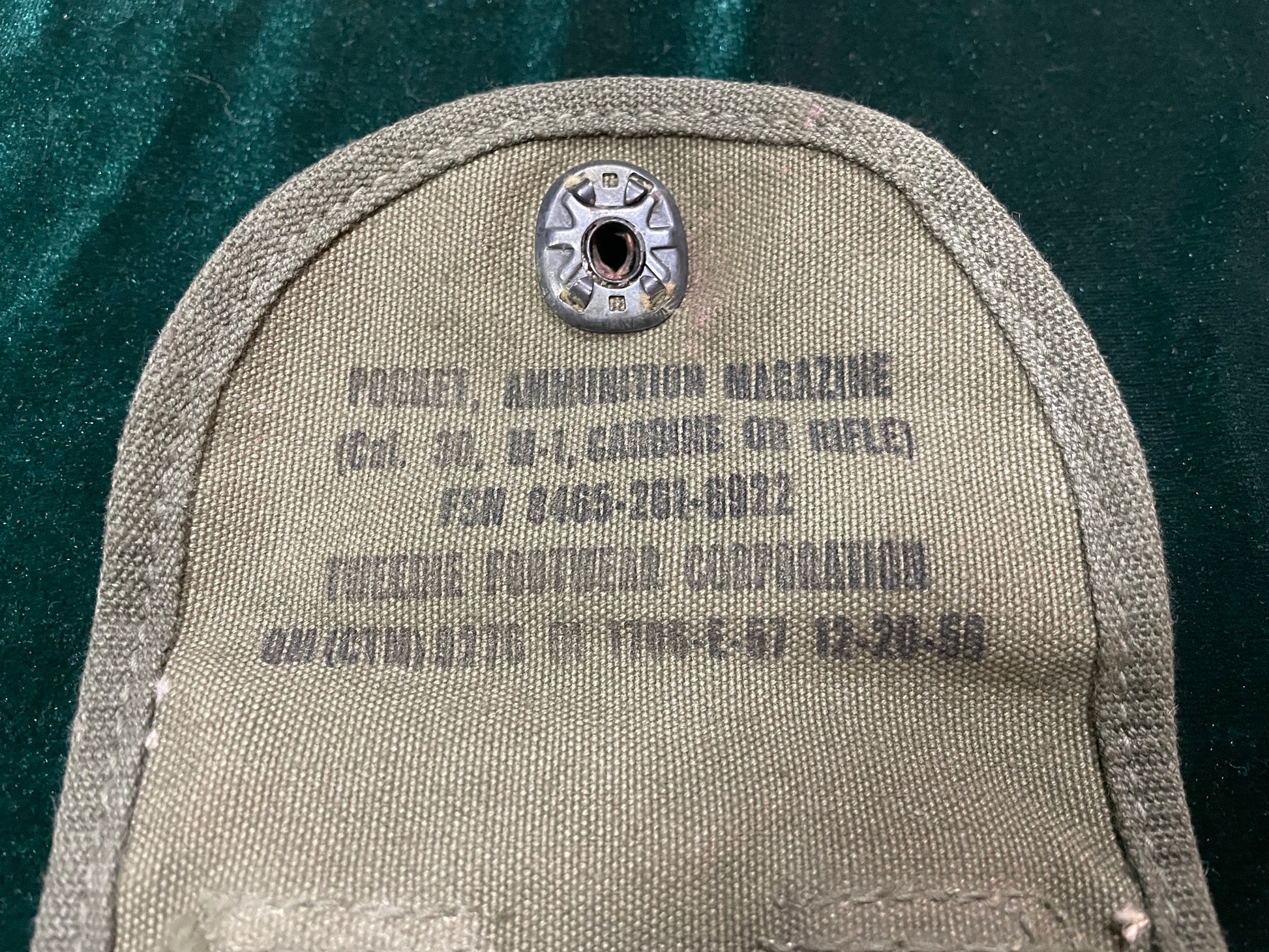 US marked, M1 carbine magazine pouch. 1956 dated. Overall good surplus condition. Military surplus.